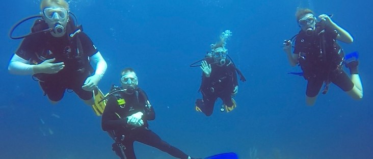 On the first vacation, I was still hesitant and anxious when we would dive. By the second vacation, I found peace. On the second dive of the second vacation, we were slowly moving through the water. I found a way to calm my fear. I was able to loosen my mask and allow my curiosity to lead me. What would we see on the bottom? What colors would we see in the next fish what swims by? Curiosity took over. It took courage to get through the class and curiosity to lead me to continue diving.